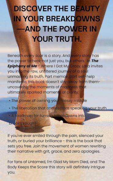 The Epiphany of Me/Where I Got My Crazy reflects my journey — a tapestry of imagination, healing, and truth woven through words. Within these pages lie worlds born of passion, lessons of resilience, and the echoes of desire to improve.